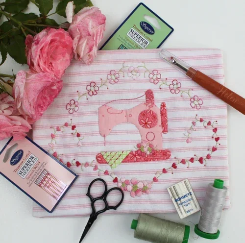 Patroon van Hugs 'n Kisses, needle know it all sticher's garden. inclusief: applique paper.